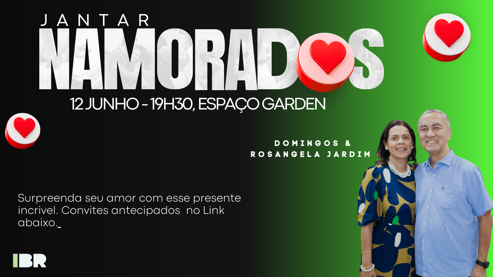 IGREJA BATISTA DA REDENÇÃO Avenida Maria Ribeiro, 1015, RedençãoSepare essa data e venha celebrar o amor junto conosco. Vamos receber nossos queridos Domingos e Rosangela Jardim de Marília/SP para ministrar o nossos corações! Adquira já o seu convite!